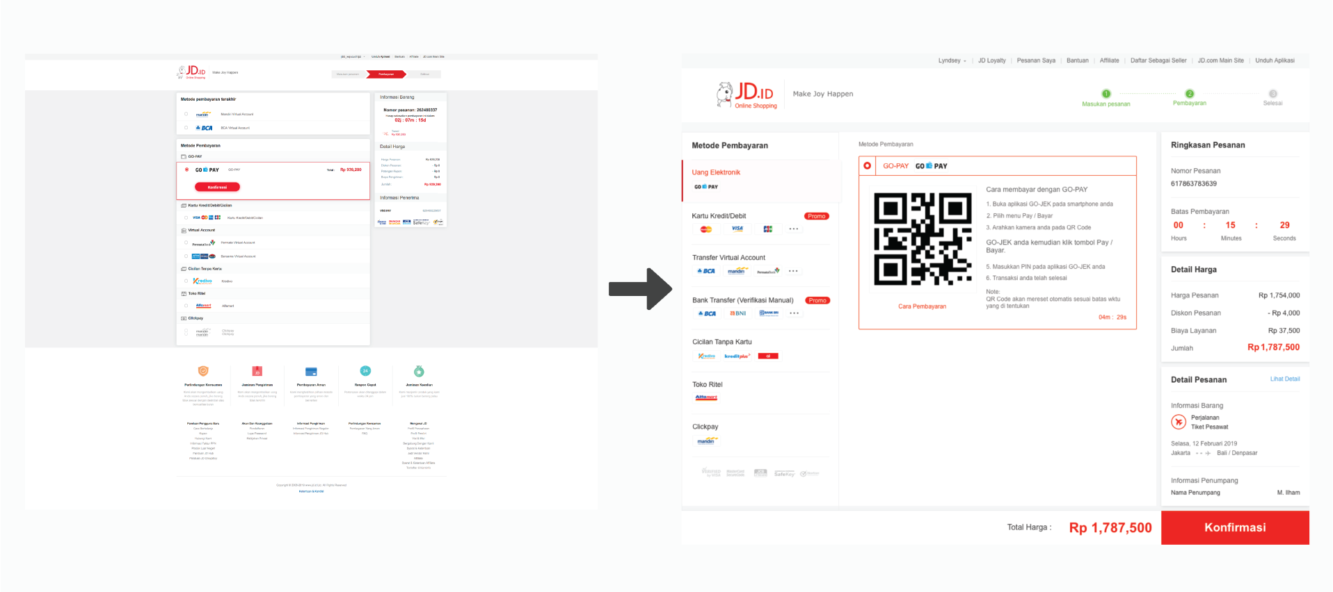 Our concept is about redesign the cashier UI inspired by Indonesian customer habit and trend design in indone- sia, for compete with other ecommerce or competitor. we make this design more looking good and user friendly. we propose a different layout and structure information, we make it into three section the first one is leftbar menu, middle for content and right side about detail payment information