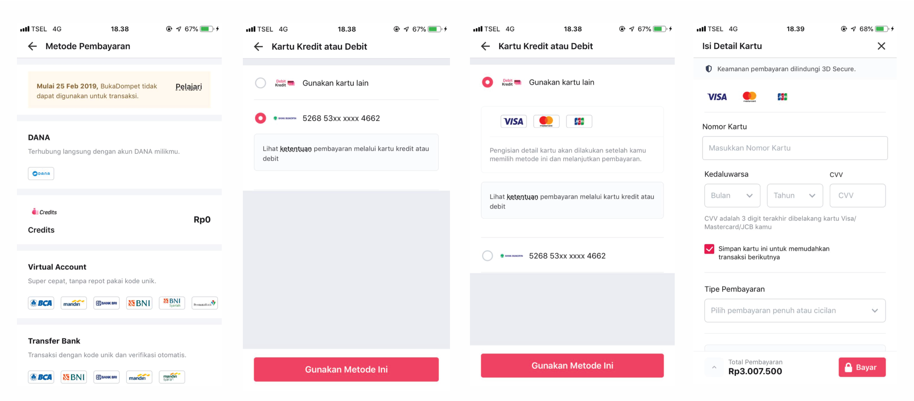 2. a new design in credit card page have a layout similar like tokopedia. but we have different values and designs more good than tokopedia doing.
