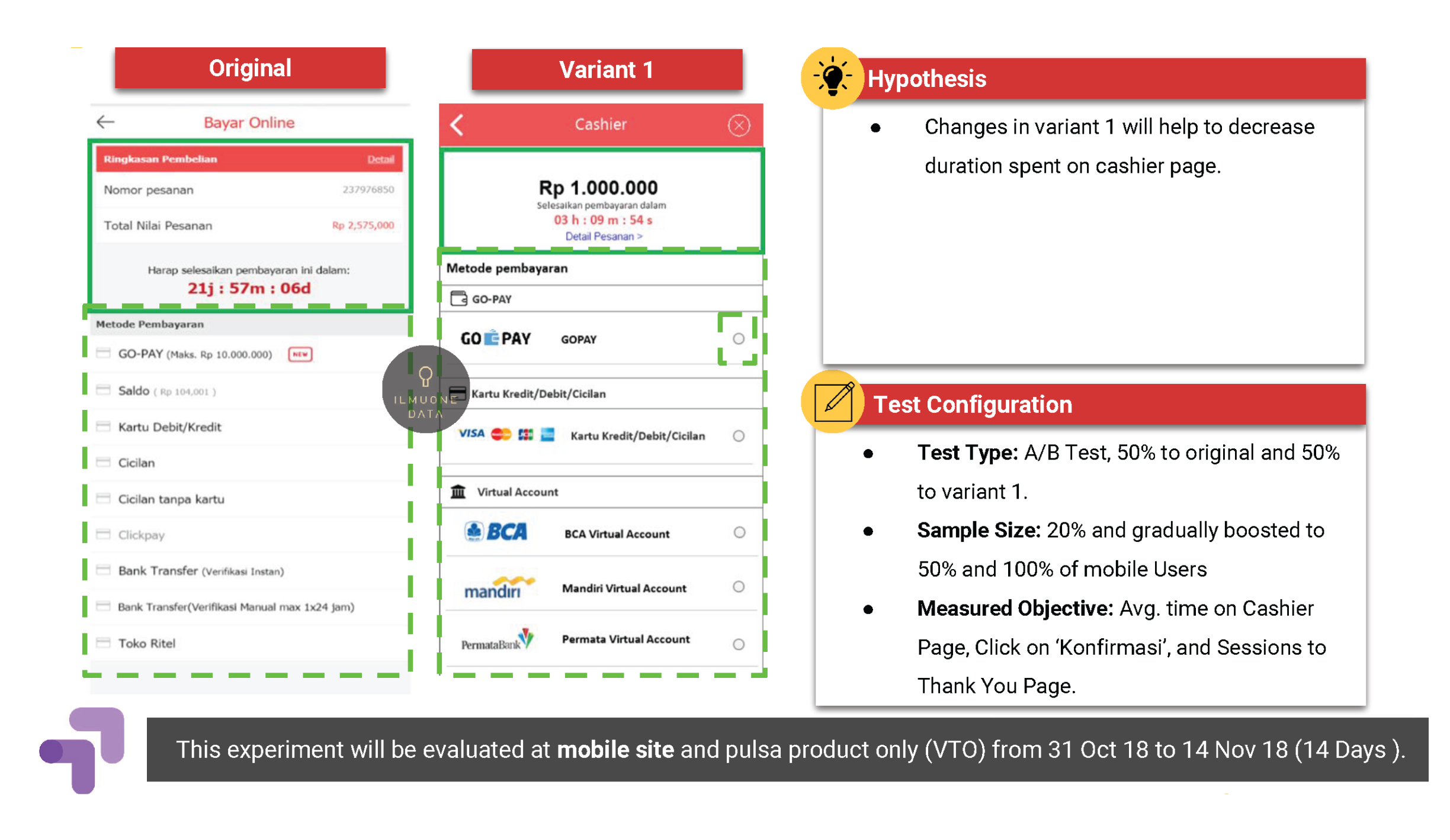 3. Combining this and previous insight we can conclude this experiment has helped users to leave cashier page faster but didn’t trigger to have different % Click ‘Konfirmasi’.