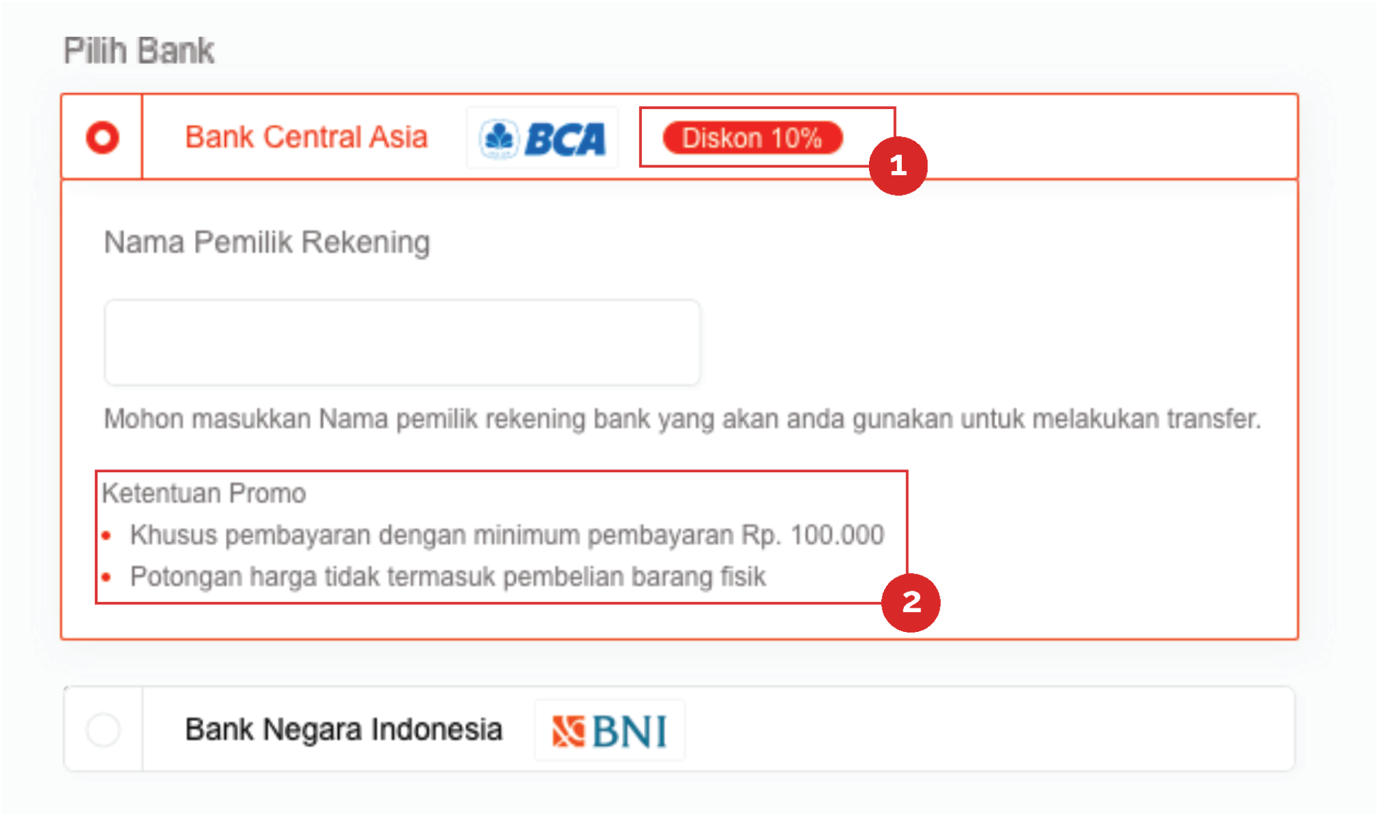 Indonesia has a variety of payment methods, therefore the new UI design is created more categorized (from general to specific payment)