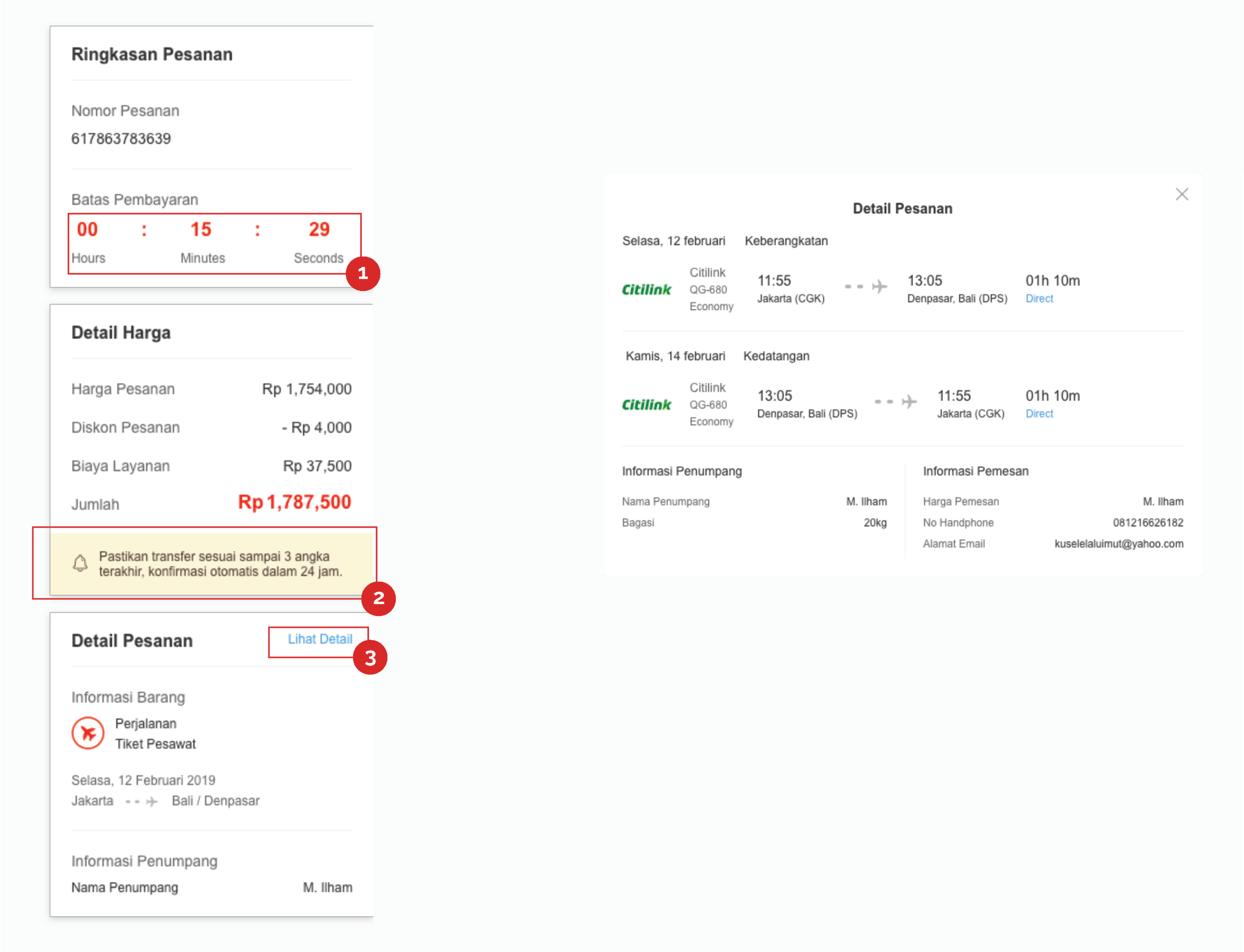 1. will show the order & payment detail when user click ‘lihat detail’ section we made a full page pop up because detail order its to many information must be show [img01]