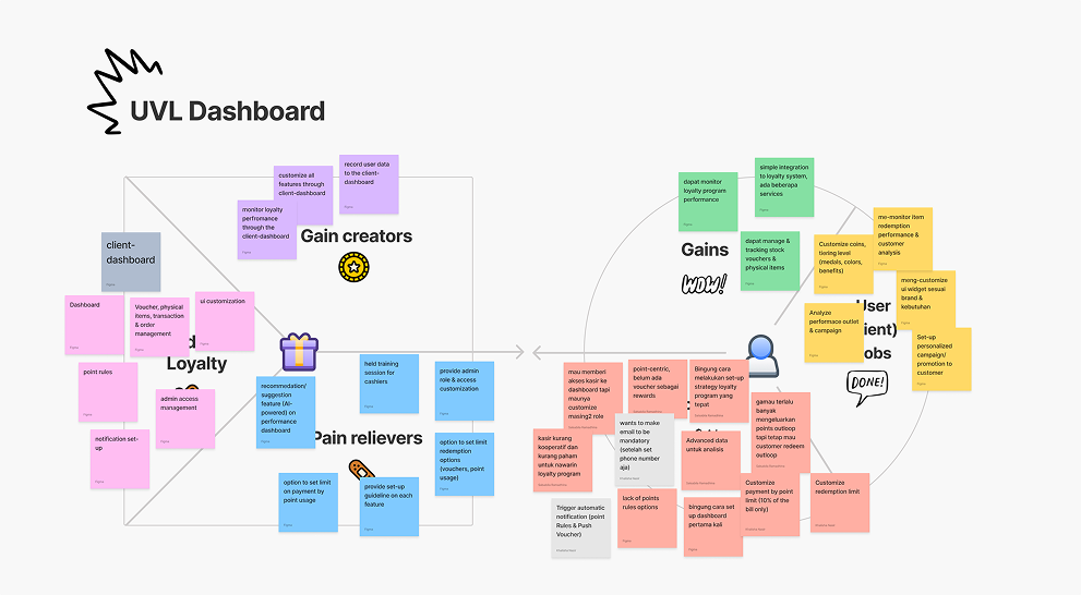 In the discovery phase, we used the Value Proposition Canvas to identify and explore improvement opportunities within the Loyalty Program. This tool helped us map user needs, frustrations, and desired outcomes, highlighting key misalignments between what users value and what the program currently delivers. Through this analysis, we pinpointed specific pain points and under-leveraged gains, giving us clear insights into how we can better align the program’s value with user expectations to boost engagement, satisfaction, and retention.